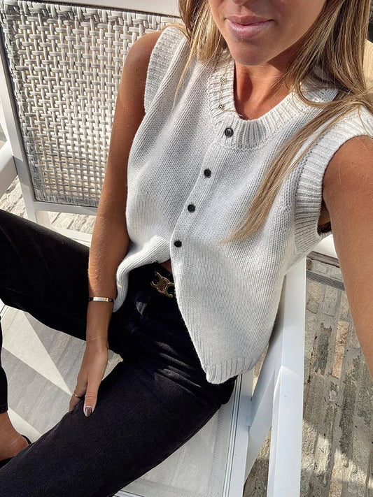 Babette – Gilet Sans Manches Gris Femme Polyvalent et Tendance