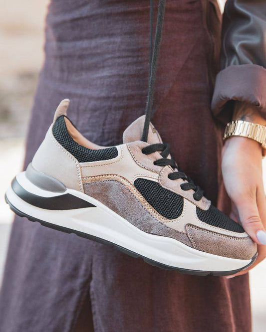 Mélina – Baskets Femme Beige et Noires à Lacets