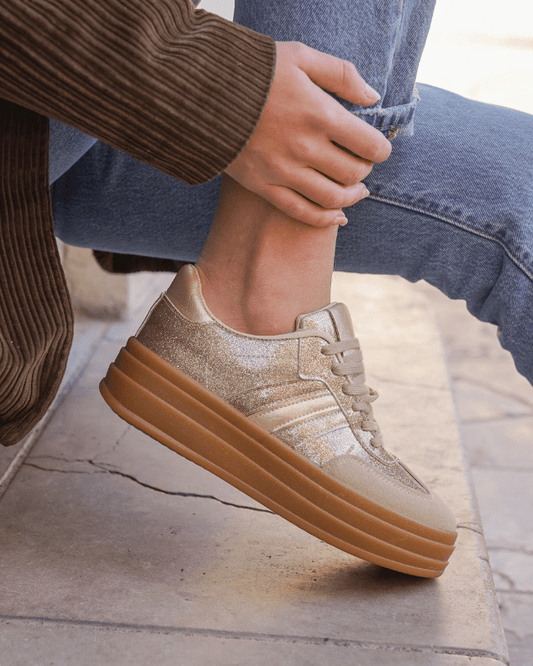 Manon – Baskets Compensées Femme Dorées à Lacets