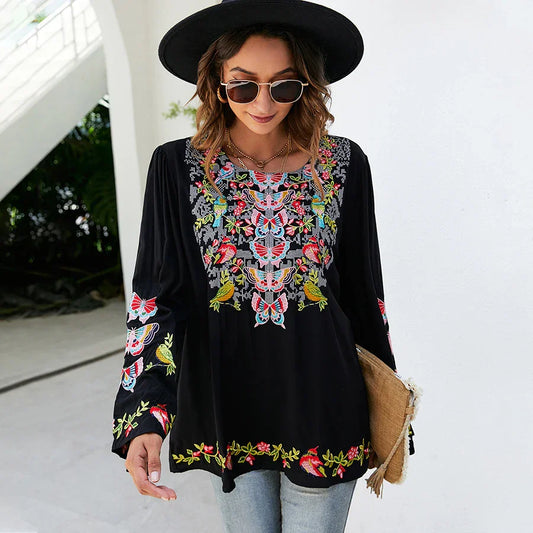 Blandine – Blouse Noire Brodée Femme Style Raffiné et Sophistiqué
