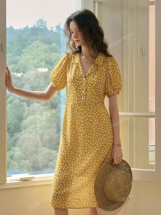 Déborah – Robe Femme Imprimé Marguerites Manches Bouffantes Printemps Été