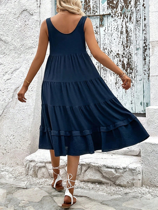Domitille – Robe Longue Femme Sans Manches Unie à Boutons