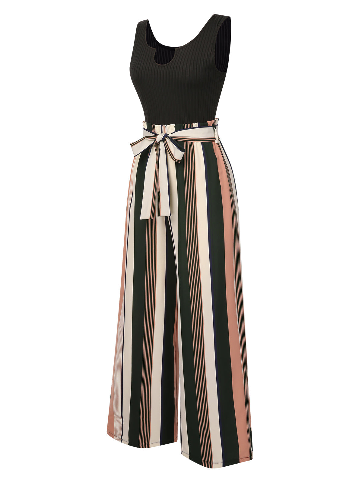 Bertille – Combinaison Tricot Femme Rayée Noire Ceinturée Années 50 | Vintage et Élégance